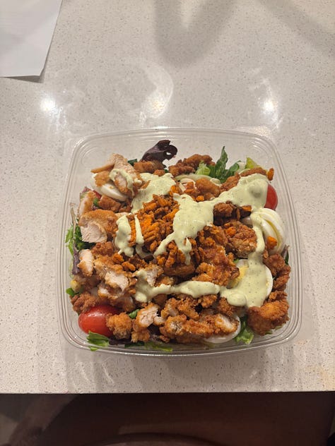 I was only consistent for the first three days before things got haywire. My mom visited—and nothing on her—but it's so much harder for me to curate and create when there's someone else around. Then healthy eating? Right out the window. To be fair, it was my luteal phase—cravings were on ten. In the past, I would've pushed through, but this time I obliged and fed my uterus... hahaha.